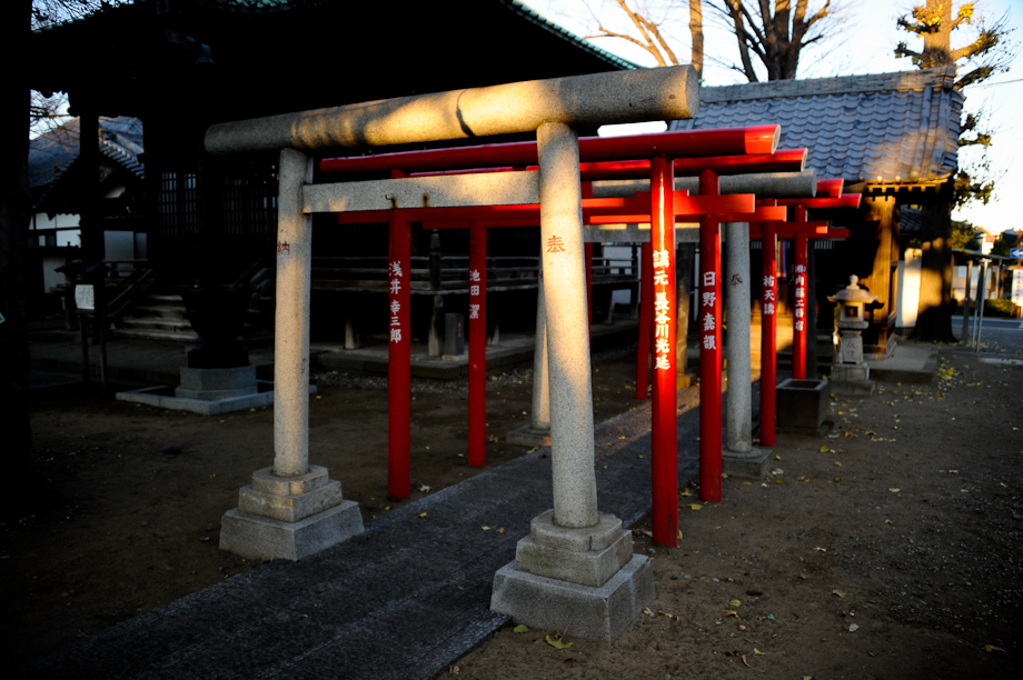 Many Japanese visit their local temples and shrines in the first few days of the New Year. I went out again yesterday to explore some of the local temples to see the activity. The custom when approaching the temple is to ring the bell. After ringing the bell people clap their hands twice, bow once and pray silently. I always visit the temples during this time as it is a great way to capture Japanese culture with my camera. Many of the temples have a big bell with a long rope hanging but this small temple I went to yesterday morning had this little charming set of bells.