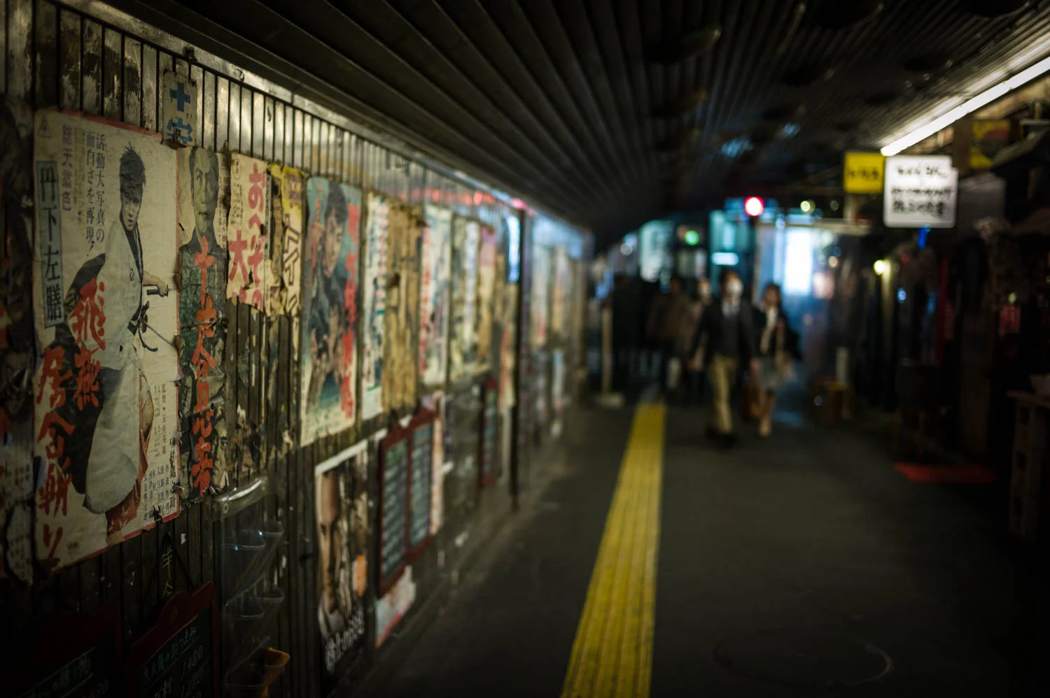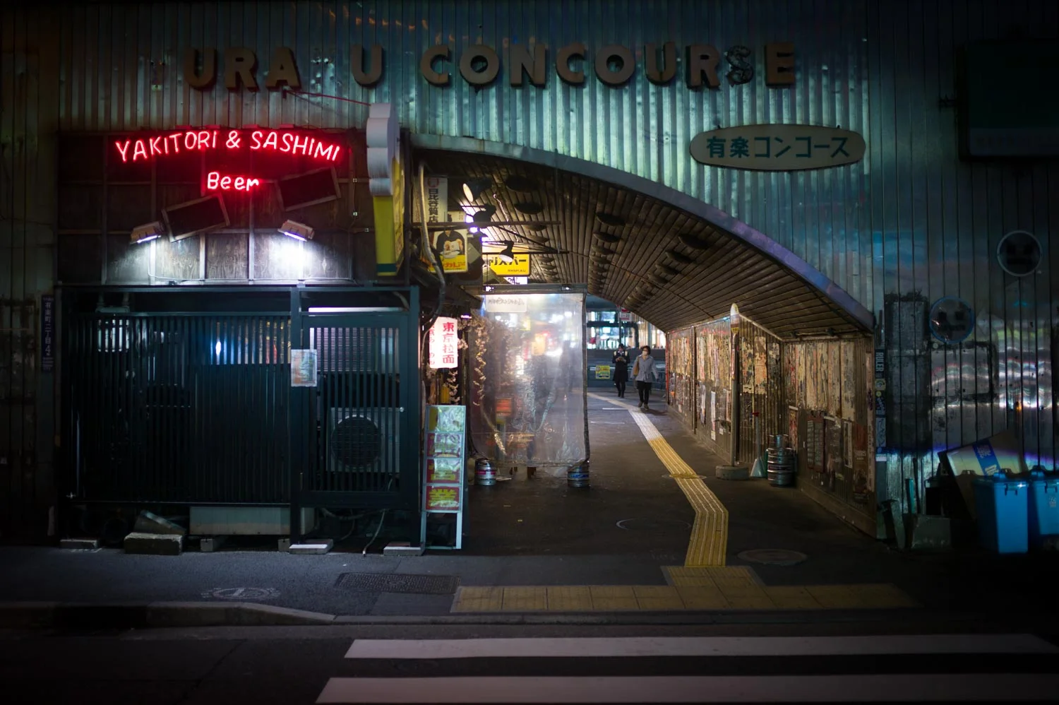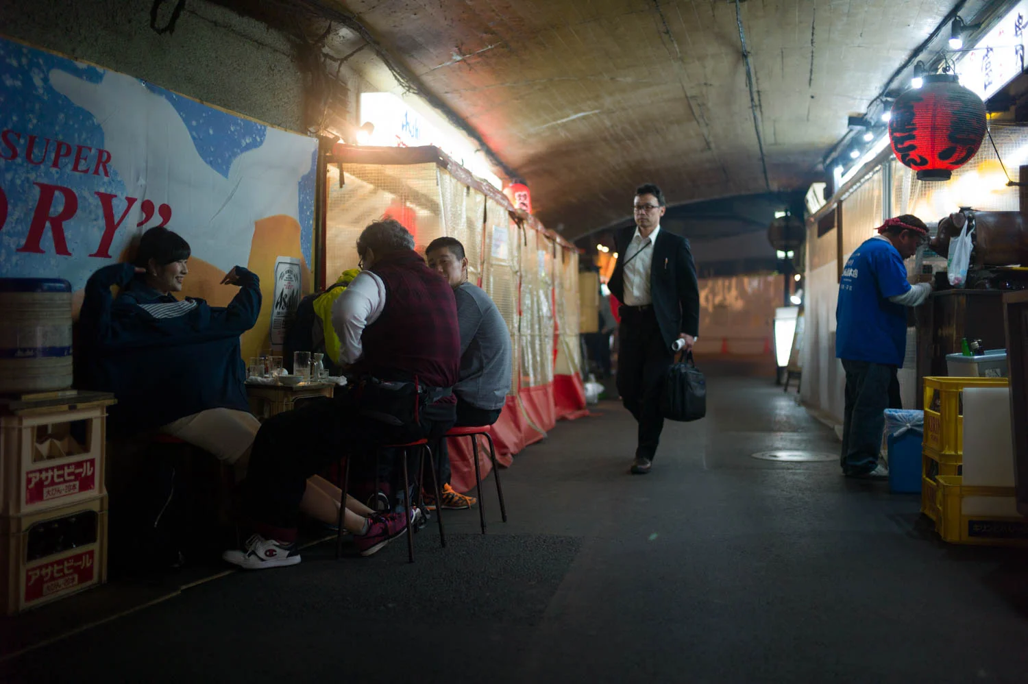 Yurakucho has a lot of bars and restaurants that weave around and under the train tracks. It's a bit dirty, crowded and smokey. The atmosphere is amazing for photography. It never disappoints me.