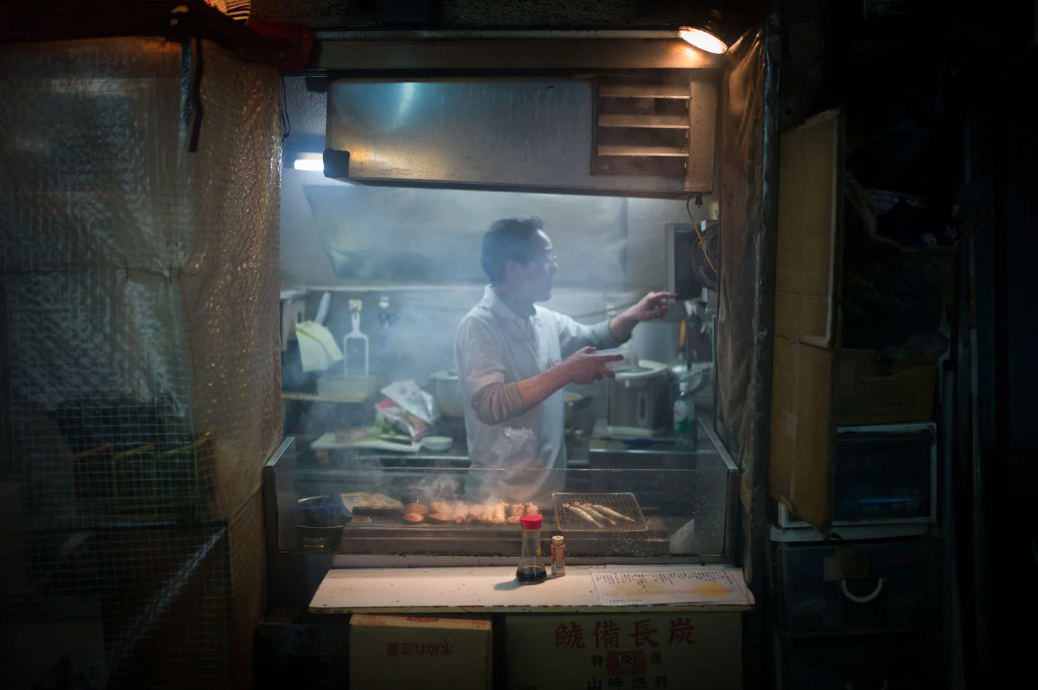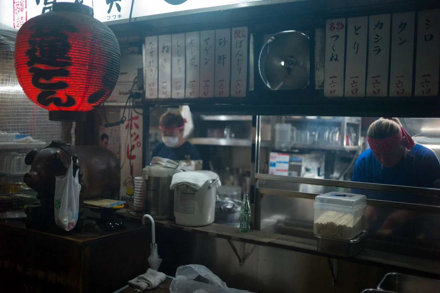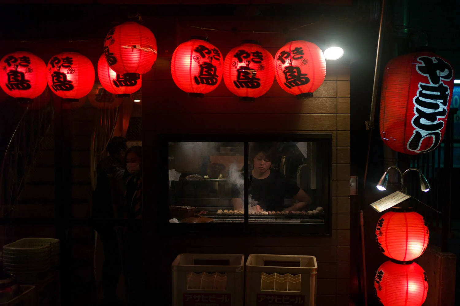Yurakucho has a lot of bars and restaurants that weave around and under the train tracks. It's a bit dirty, crowded and smokey. The atmosphere is amazing for photography. It never disappoints me.
