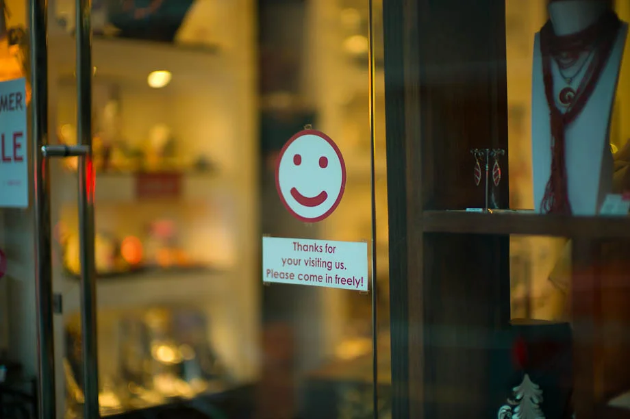 Here is an example when where I focused on the bear and then recomposed the shot. You can see the exposure was set on the store lights making the bear far too dark.