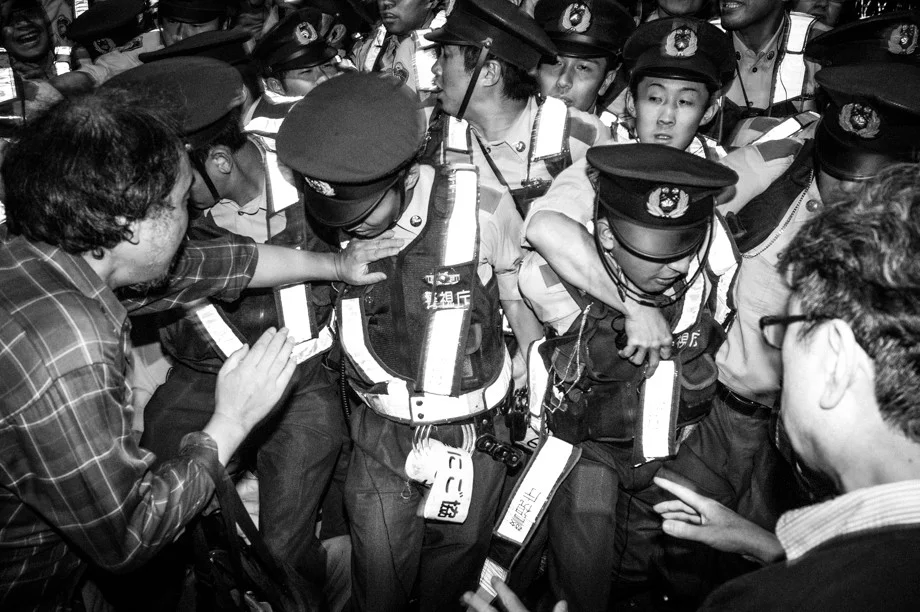Protests in Japan are typically pretty peaceful and really well organized on both sides. I saw this in the protests after the Earthquake in 2011. You can see the police smiling and people giving out Japanese curry to give tired protesters more energy.